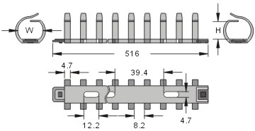 材質: UL合格之NYLON 66(灰色),防火等級94V-2,不易老化。 特點: 線槽左右二側設有連接點(公母扣),可無限延長。