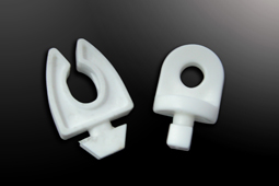 材質: 採PE(白色)射出成型。 用法: 用於展覽會鋁柱上,EX-8用於固定電線,EX-9可用在固定掛圖或作掛勾用。