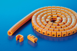 材質: NYLON 6(橘黃色),符合歐盟RoHS要求。 特點: 線路配妥後再行崁入的配線標誌。 優點: NYLON 6材質彈性大,一種規格可使用多種尺寸電線,且具有不易變形、不易脫落的特點,印字漂亮、不易褪色。內部兩側設有止滑點不易個別翻轉,保持編碼的一致性,編碼顯示效果佳。