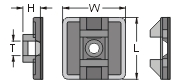 材質: UL合格之NYLON66(本色),防火等級 94V-2,底座背膠。 用法: 使用時將底面膠帶撕去離型紙,再將固定座貼於鐵板之上,復以紮線帶穿於孔中,即可使用,可省去面板鑽孔之麻煩。 ※ 適用之紮線帶:紮線帶寬度小於帶孔( T )者。