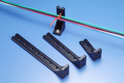 材質: UL合格之NYLON66黑色,防火等級94V-2。 用法: 先將階梯式電線固定座用螺絲固定在設備支架上,再利用紮線帶穿過固定座上的方孔,使電線固定在固定座上即可。 特點: 使電線排列整齊、美觀,易於整理。