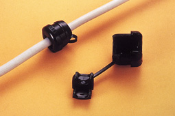 材質: UL合格之NYLON 66(黑色) 防火等級 94V-2,不易老化。 用途: 各種家電用品,儀器、電腦之電源線固定及保護用,避免電源線滑動而被機板割傷。 用法: 按下序 3圖裝配即可。