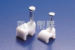 材質: 採PE(白色)射出成型彈性大、耐衝擊。 特點: 本系列固定夾,均為插釘式,鋼釘直接附著於塑膠座上,可大量節省工時,降低施工成本。