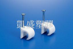 材質: 採PE(本色)射出成型彈性大、耐衝擊。 特點: 本系列固定夾,均為插釘式,鋼釘直接附著於塑膠座上,可大量節省工時,降低施工成本。
