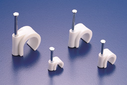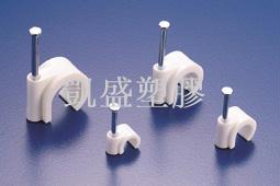 材質: 採PE(白色)射出成型彈性大、耐衝擊。 特點: 本系列固定夾,均為插釘式,鋼釘直接附著於塑膠座上,可大量節省工時,降低施工成本。