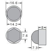 点击放大 产品名称: 六角螺帽保護套 产品型号: 产品简介: 六角螺帽保護套 详细说明 K908 六角螺帽保護套 Hexagonal Protection Cap 材質: PE(黑色)。 單位:mm 型 號 Item No. 適用螺帽 NUT 尺寸 Dimension 包 裝 Packing HPM-8 M8 如圖 100 pcs / 包