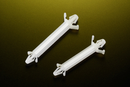 材質: UL合格之NYLON 66(本色),防火等級 94V-2。 用途: PC板固定用。 用法: 免工具、用手裝卸容易。使用時先將基板鑽孔後將隔離柱固定,再將 PC板套入即可。 特點: 雙鎖式,固定力強,插入省力,不易脫落。