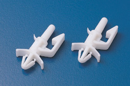 材質: UL合格之NYLON 66(白色),防火等級 94V-0。 用途: PC板固定用。 用法: 免工具、用手裝卸容易。使用時先將基板鑽孔後將隔離柱固定,再將 PC板套入即可。