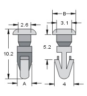 点击放大 产品名称: 扣式鉚釘 产品型号: SN-0305。 产品简介: 详细说明 1131 KSS 扣式鉚釘 Sanp Rivet 材質: UL合格之 NYLON66(本色),防火等級 94V-2。 單位:mm 型 號 Item No. A B 適用結合長度 包 裝 Packing SN-0305 3.1 5.0 5.0 100 pcs / 包