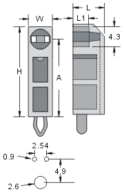 点击放大 产品名称: LED座 产品型号: PLM-16 产品简介: 详细说明 1343 KSS LED座 LED Holder 材質: UL合格之 NYLON 66(本色),防火等級 94V-2。 單位:mm 型 號 Item No. 尺寸 Dimension 包 裝 Packing A L L1 W H LED燈 PLM-16 16.0 6.7 3.4 5.1 18.7 3Φ 2 PIN 100 pcs / 包