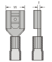 点击放大 产品名称: 公母插(母) 产品型号: 产品简介: 公母插(母) 详细说明 K1504 公母插(母) Female Lug 單位:mm 型 號 Item No. NEMA尺寸 電線規挌 包 裝 Packing W T AWG mm2 LV1.25-3A 2.8 0.5 22-16 0.5-1.0 100 pcs / 包 LV1.25-3A8 2.8 0.8 22-16 0.5-1.0 LV1.25-5A 4.8 0.5 22-16 0.5-1.0 LV1.25-5A8 4.8 0.8 22-16 0.5-1.0 LV1.25-7A 6.4 0.8 22-16 0.5-1.0 LV2-3A 2.8 0.5 16-14 1.5-2.5 LV2-3A8 2.8 0.8 16-14 1.5-2.5 LV2-5A 4.8 0.5 16-14 1.5-2.5 LV2-5A8 4.8 0.8 16-14 1.5-2.5 LV2-7A 6.4 0.8 16-14 1.5-2.5 LV2-8A 8.0 0.8 16-14 1.5-2.5 LV2-10A 9.5 0.8 12-10 4.0-6.0 LV5.5-7A 6.4 0.8 12-10 4.0-6.0 LV5.5-10A 9.5 0.8 12-10 4.0-6.0