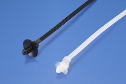 材質: UL合格之NYLON 66,防火等級 94V-2,不易老化。 使法: 先將基板挖孔,再把紮線帶插入孔內,再將電線束緊即可。 特點: 特點可在鬆開,重覆使用。