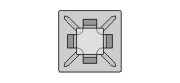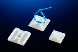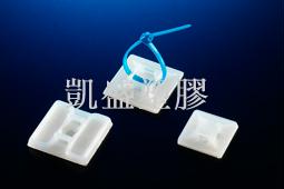 材質: UL合格之NYLON66(本色),防火等級 94V-2,底座背膠。 用法: 使用時將底面膠帶撕去離型紙,再將固定座貼於鐵板之上,復以紮線帶穿於孔中,即可使用,可省去面板鑽孔之麻煩。 ※ 適用之紮線帶:紮線帶寬度小於帶孔( T )者。