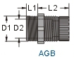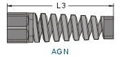 材質: UL合格之NYLON 66(黑色)防火等級 94V-2。 特點: 固定頭尾端設有耐扭式護線管,有保護電線不易折損之作用。 ◆ 若分開訂購各零件時,請在型號後面加上各代號:螺帽(L) 墊片(W) 本體(B) 夾緊圈(S) 迫緊頭(N)例:訂購AG-12SR螺帽,型號為AGL-12SR。