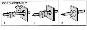 材質: UL合格之NYLON 66(黑色) 防火等級 94V-2,不易老化。 用途: 各種家電用品,儀器、電腦之電源線固定及保護用,避免電源線滑動而被機板割傷。 用法: 按下序 3圖裝配即可。