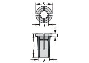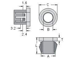材質: UL合格之 NYLON 66(黑色)防火等級 94V-2。 用途: 使粗劣的鐵孔變成圓滑的出線孔。 各種電線電纜之保護及絕緣。 用法: 不需工具,只要用手輕輕一壓,即可完成裝配。適用3.2mm以下之鐵板。