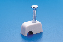 材質: 採PE(灰色)射出成型彈性大、耐衝擊。 特點: 本系列固定夾,均為插釘式,鋼釘直接附著於塑膠座上,可大量節省工時,降低施工成本。
