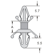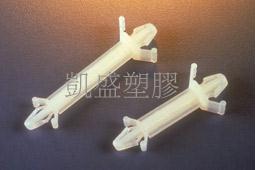 材質: UL合格之NYLON 66(本色),防火等級 94V-2。 用途: PC板固定用。 用法: 免工具、用手裝卸容易。使用時先將基板鑽孔後將隔離柱固定,再將 PC板套入即可。 特點: 雙鎖式,固定力強,插入省力,不易脫落。
