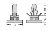 材質: UL合格之NYLON 66(本色),防火等級 94V-2。 用途: 用於無法鑽孔之機板與PC板間的固定。