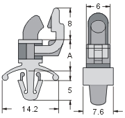 材質: UL合格之NYLON 66(白色),防火等級 94V-2。 用途: PC板固定用。 用法: 免工具、用手裝卸容易。使用時先將基板鑽孔後將隔離柱固定,再將 PC板套入即可。