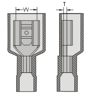 点击放大 产品名称: 絕緣公母插(母) 产品型号: 产品简介: 絕緣公母插(母) 详细说明 K1504 絕緣公母插(母) Insulated Female Lug 單位:mm 型 號 Item No. NEMA尺寸 電線規挌 包 裝 Packing W T AWG mm2 PV1.25-3A 2.8 0.5 22-16 0.5-1.0 100 pcs / 包 PV1.25-3A8 2.8 0.8 22-16 0.5-1.0 PV1.25-5A 4.8 0.5 22-16 0.5-1.0 PV1.25-5A8 4.8 0.8 22-16 0.5-1.0 PV1.25-7A 6.4 0.8 22-16 0.5-1.0 PV2-3A 2.8 0.5 16-14 1.5-2.5 PV2-3A8 2.8 0.8 16-14 1.5-2.5 PV2-5A 4.8 0.5 16-14 1.5-2.5 PV2-5A8 4.8 0.8 16-14 1.5-2.5 PV2-7A 6.4 0.8 16-14 1.5-2.5 PV5.5-7A 6.4 0.8 12-10 4.0-6.0